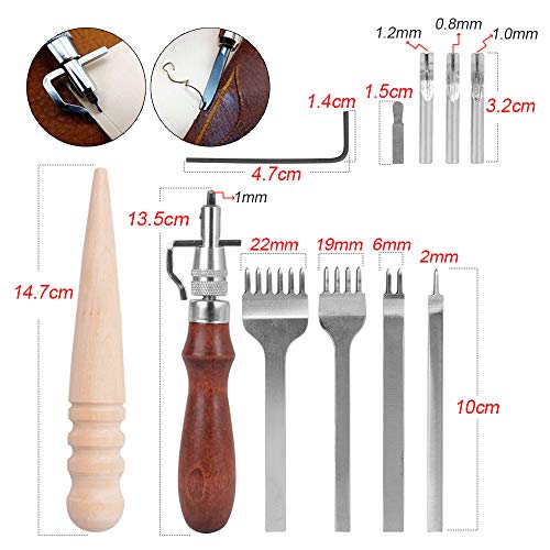 Attrezzi artigianali pratici: Questo set di strumenti per pelletteria può soddisfare i bisogni primari degli artigiani, è perfetto per la lavorazione professionale e domestica in pelle o cuoio come borsa, portafogli, cintura, borse per le chiave, ecc.