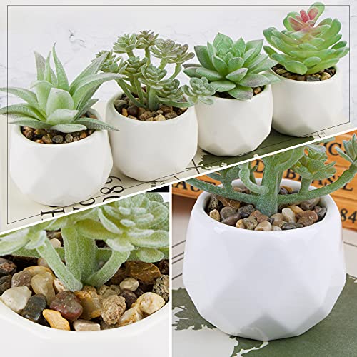 VINFUTUR 4 Pz Piante Artificiali Succulente Piante Finte Grasse con Vasi Decorazione da Interno e Esterno Casa Davanzale Cucina Scrivania