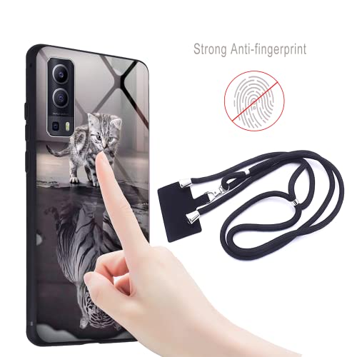 Vingarshern Cover VIVO Y72 (5G) Custodia e Vetro,Morbido Bordo Case Vivo Y72 5G Cover Silicone+Vetro Temperato Posteriore Con Motivo HD,Cellulare Cover Vivo Y72 5G Con Cordino,Foto06