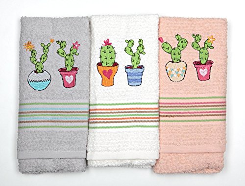 VINGI home feeling set 3 strofinacci in spugna art. kactus colori rosa grigio e bianco mis 45 x 70