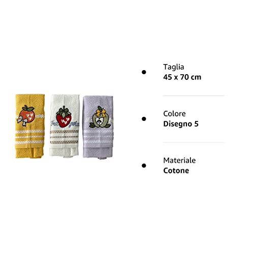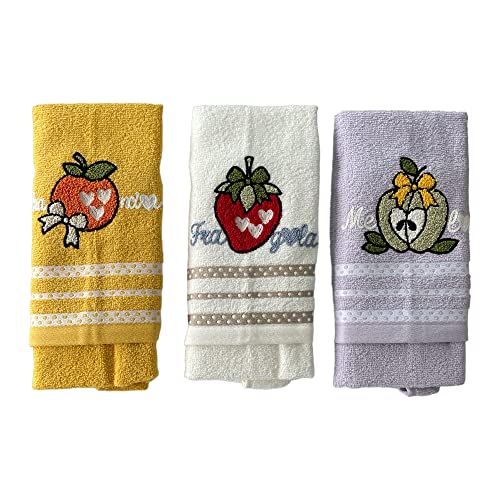 Vingi Set 3 Strofinacci da Cucina in Spugna 100% Cotone, 45x70cm, Multicolore con Disegno Ricamato, Set di Panni Morbidi, (Disegno 5)