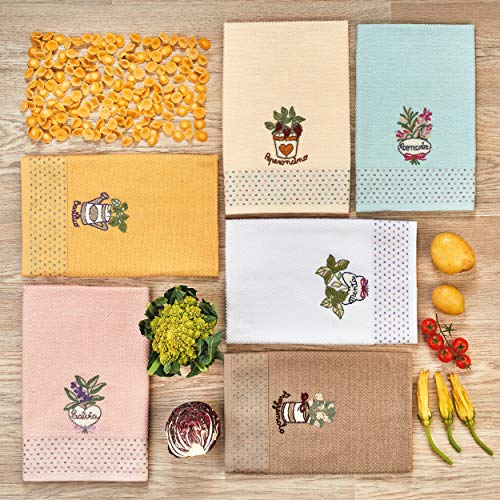 Vingi 3 Strofinacci rettangolari in Spugna Ricamati canovaccio Herbarium