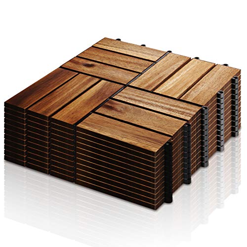 VINGO 12 listelli in legno, 3 m², rivestimento per pavimenti in legno di acacia, 30 x 30 cm, piastrelle a clic, perfette per giardino, terrazza, balcone (33 pezzi)