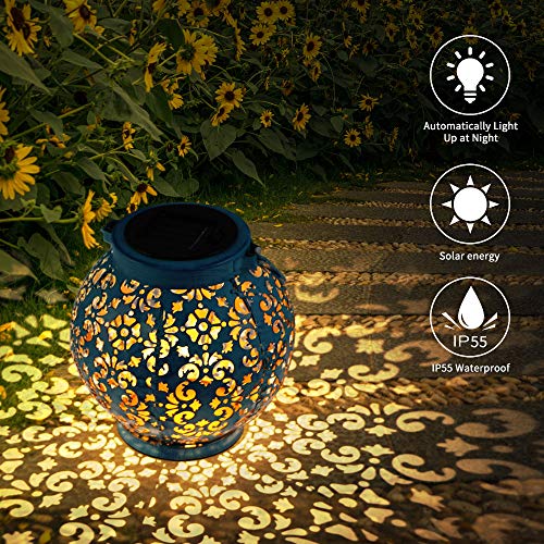 MATERIALE METALLICO DI AGGIORNAMENTO: La lanterna solare è realizzata in materiale di ferro di alta qualità, dura, resistente allusura e durevole, che possiede una lunga durata e una struttura metallica di alta classe, brava a decorare il tuo giardino.