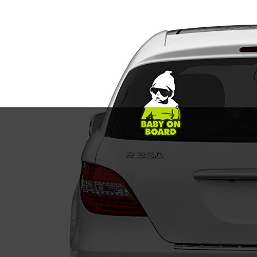 30 x 20 cm - , in vinile, decalcomania, modello per Auto Baby On Board, fluorescente al buio, motivo: bambini al veicolo/LED di segnalazione per Auto, decalcomania, adesivo per bambini, in confezione regalo