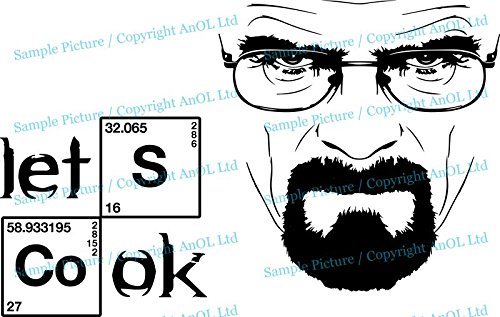 40 x 25 cm - , in vinile, da parete, modello: Breaking Bad Heisenberg ", fosforescente Lets Cook testo Kitchen adesivo Serious Walter White LED