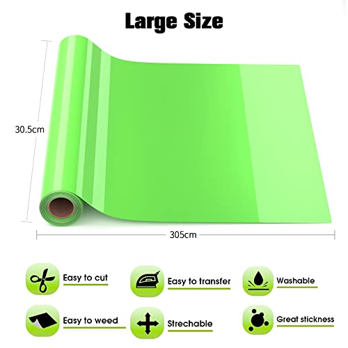 Vinile Termoadesivo per Tessuti, Vinile verde fluo 30,5 X 305CM htv vinyl Rotolo, termovinile per tessuti il Design del Vinile di Calore per T-Shirt, Cappelli, borse, Facile da tagliare ed estirpare