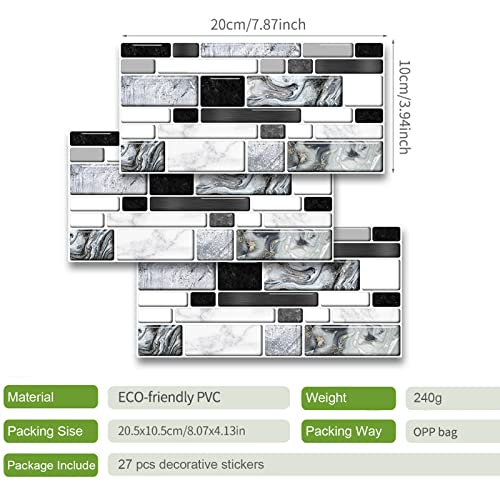 VINILITE Adesivi per Piastrelle Cucina e Bagno 20x10cm 27 Pezzi Adesivi per Mattonelle Autoadesivo Decorazione Stickers in PVC Impermeabile