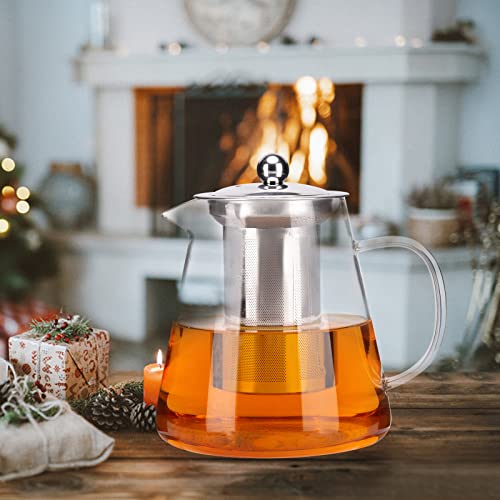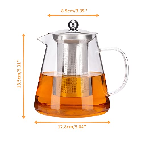 VINILITE Teiera in Vetro 950 ml Teiera in Vetro con Infusore in Acciaio inox 304 e Coperchio, Microonde Sicuro