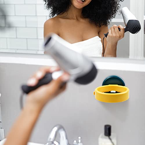 【Contenuto della confezione】 Riceverete 1 supporto per asciugacapelli, giallo+blu. dimensioni: circa 9 x 2 cm, anello in abs con cuscinetto in acrilico, non è necessario forare, ed è facile da installare, adatto alla maggior parte degli asciugacapelli