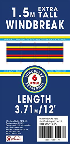Vinsani, paravento a 4, 5, 6, 8 o 10 pali, per spiaggia, vacanza, caravan, campeggio, alto paravento