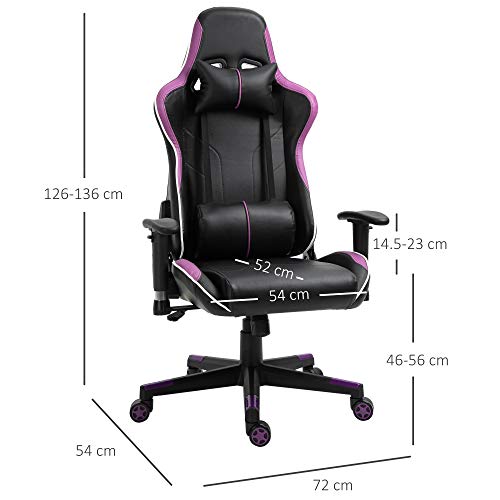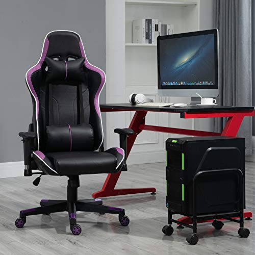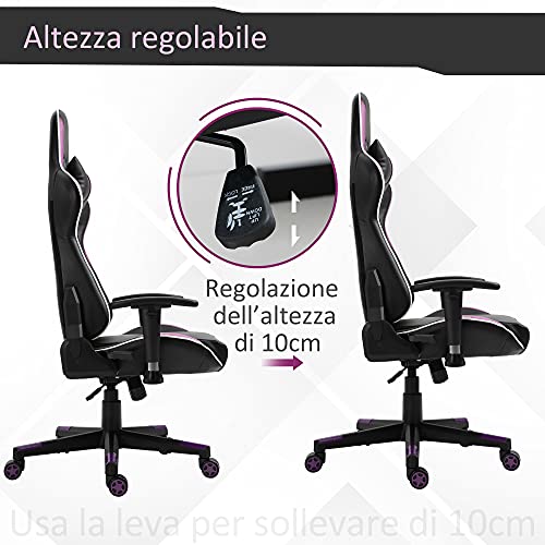 Vinsetto Poltrona da Gaming con Altezza Schienale Regolabile, Sedia Ufficio con Poggiatesta e Cuscino Lombare Nera e Viola