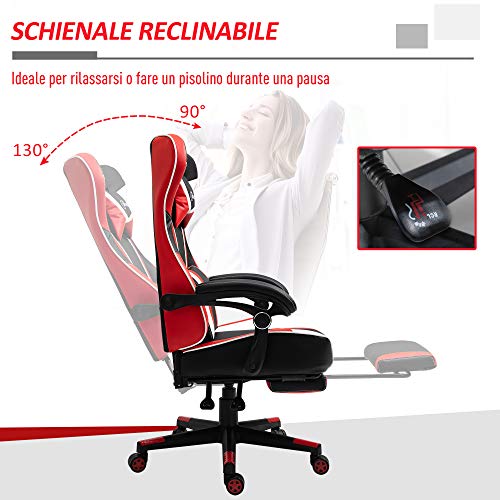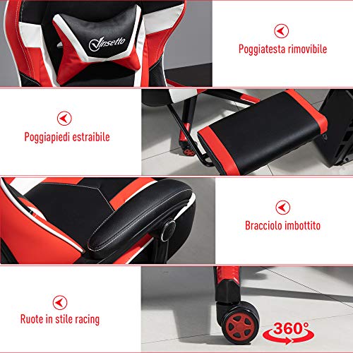 Vinsetto Poltrona Gaming o da Ufficio, Sedia Racing Reclinabile, Altezza Regolabile, in Similpelle