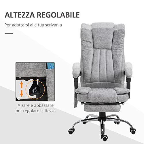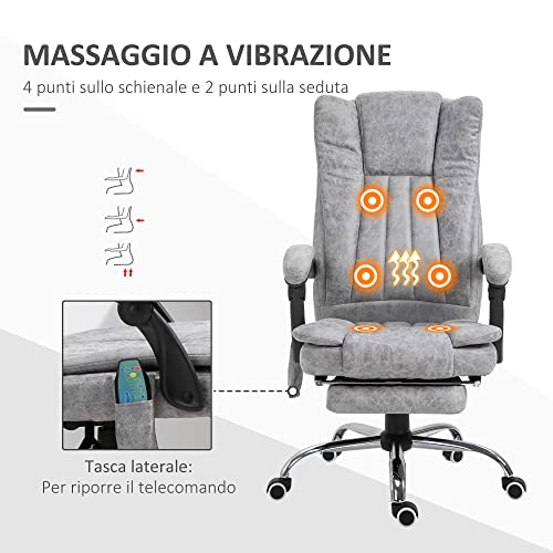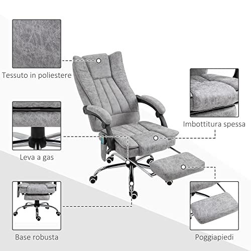 Vinsetto Poltrona da Ufficio Massaggiante Riscaldante, Altezza e Reclinazione Regolabili, Poggiapiedi Retrattile, 62x67x113-120cm, Grigio