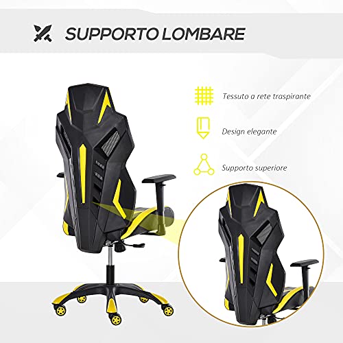 Vinsetto Sedia Poltrona Gaming Girevole e Ergonomica con Similpelle e Rete, Altezza Regolabile, 69x61x122-131.5cm, Nero Giallo
