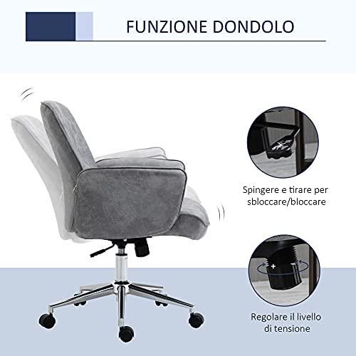 Vinsetto Sedia da Ufficio Ergonomica Altezza Regolabile e Dondolo, Rivestimento in Microfibra, 67x69x92-102cm, Grigio Chiaro