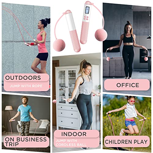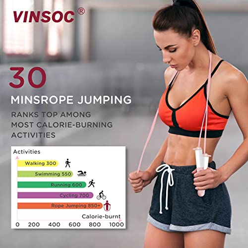 VINSOC Corda per Saltare Senza Cordone, Resistance & Endurance con la Corda per Saltare Professionale Speed Corda con Contatore di Calorie/Timer/Manici Antiscivolo - per CrossFit Altro Ancora (Rosa)