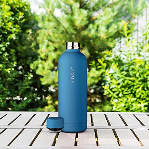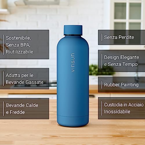 Vinsun Borraccia termica 500ml blu - Bottiglia acqua acciaio inox - senza perdite, senza BPA, riutilizzabile - Bottiglia termica per Sport, Bici, Scuola, Università