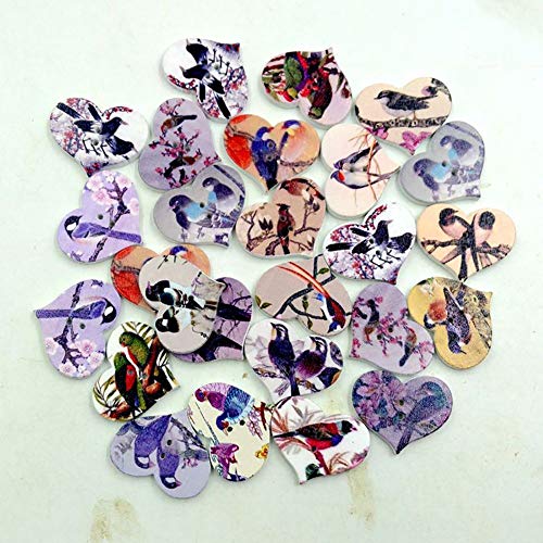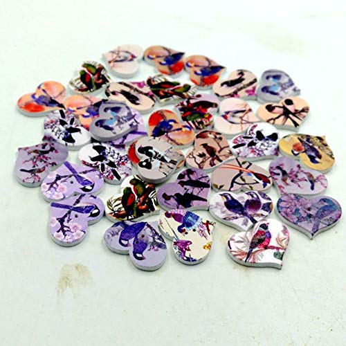 Vintage 50PCS uccello fiore cuore tasti di legno fai da te scrapbooking cucito accessori - modello casuale