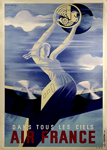 Vintage aviazione e viaggi Francia Air France dans tous les Ciels C1937 Riproduzione aviazione poster su 200 g/mq, formato A3 su carta satinata lucida (basso)