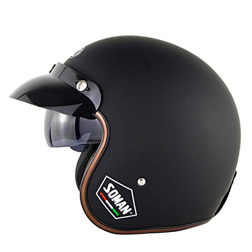 Vintage Casco da Moto Casco Jet,ECE Omologato 3/4 Mezzo Casco Moto Aperto con Visiera Scooter Chopper Skateboard Ciclismo Gioventù Uomo Donna Casco B,XL=60~61cm