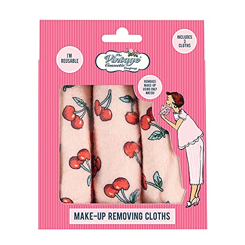 The Vintage Cosmetic Company Dual-Sided Make-up Removing Reusable Cloths Soft Material Washable Cherry Design Pack of 3
