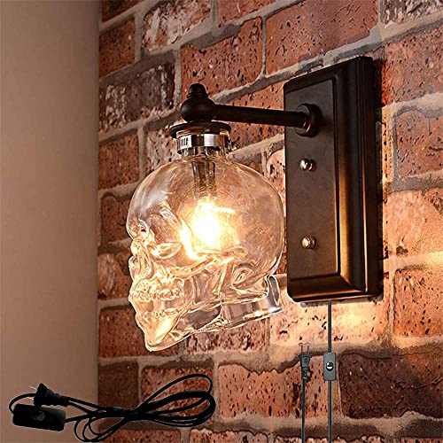Vintage Lampada da parete con interruttore e spina, Applique da Parete Testa di Cranio E14 Lampada a Muro Paralume in Vetro Testa di Teschio illuminazione decorativa per interni, 2 pezzi