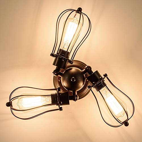 Vintage - Lampada da soffitto industriale a portalampada regolabile in metallo con attacco metallico a montaggio semi-incassato, plafoniera rustica in metallo (senza lampadina) (con 3 lampadine)