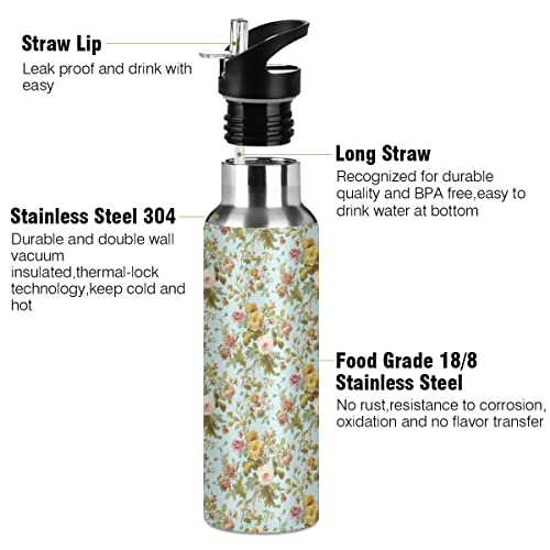 Vintage Rose - Borraccia sportiva da 1 litro con cannuccia, termica sottovuoto in acciaio inox da viaggio, grandi bottiglie d'acqua per palestra, fitness, campeggio, escursionismo, 907 g