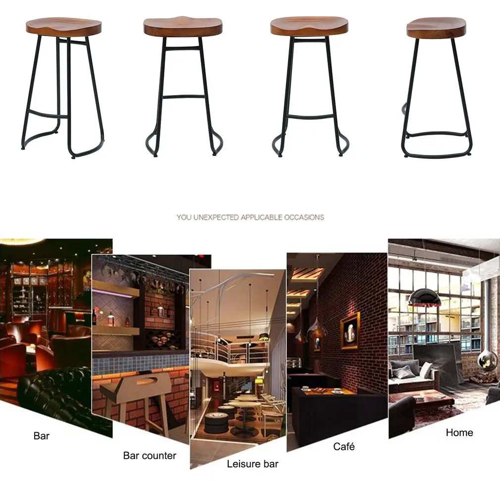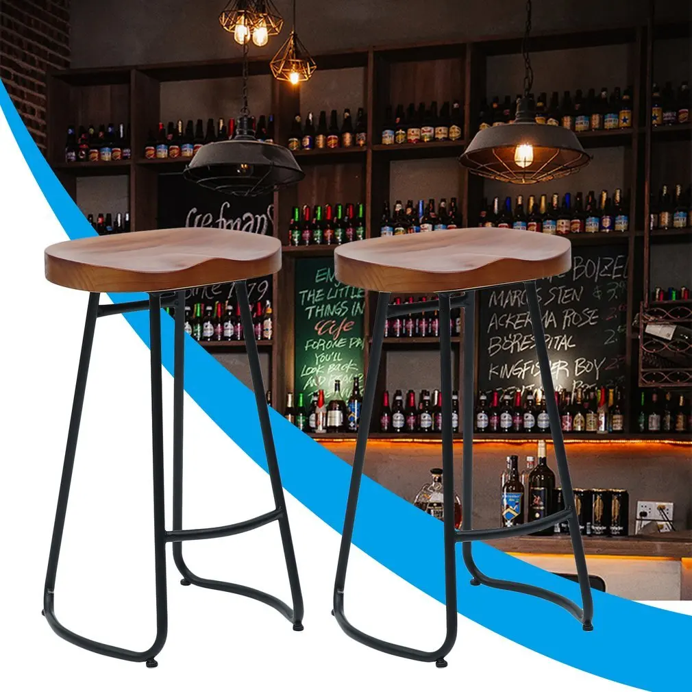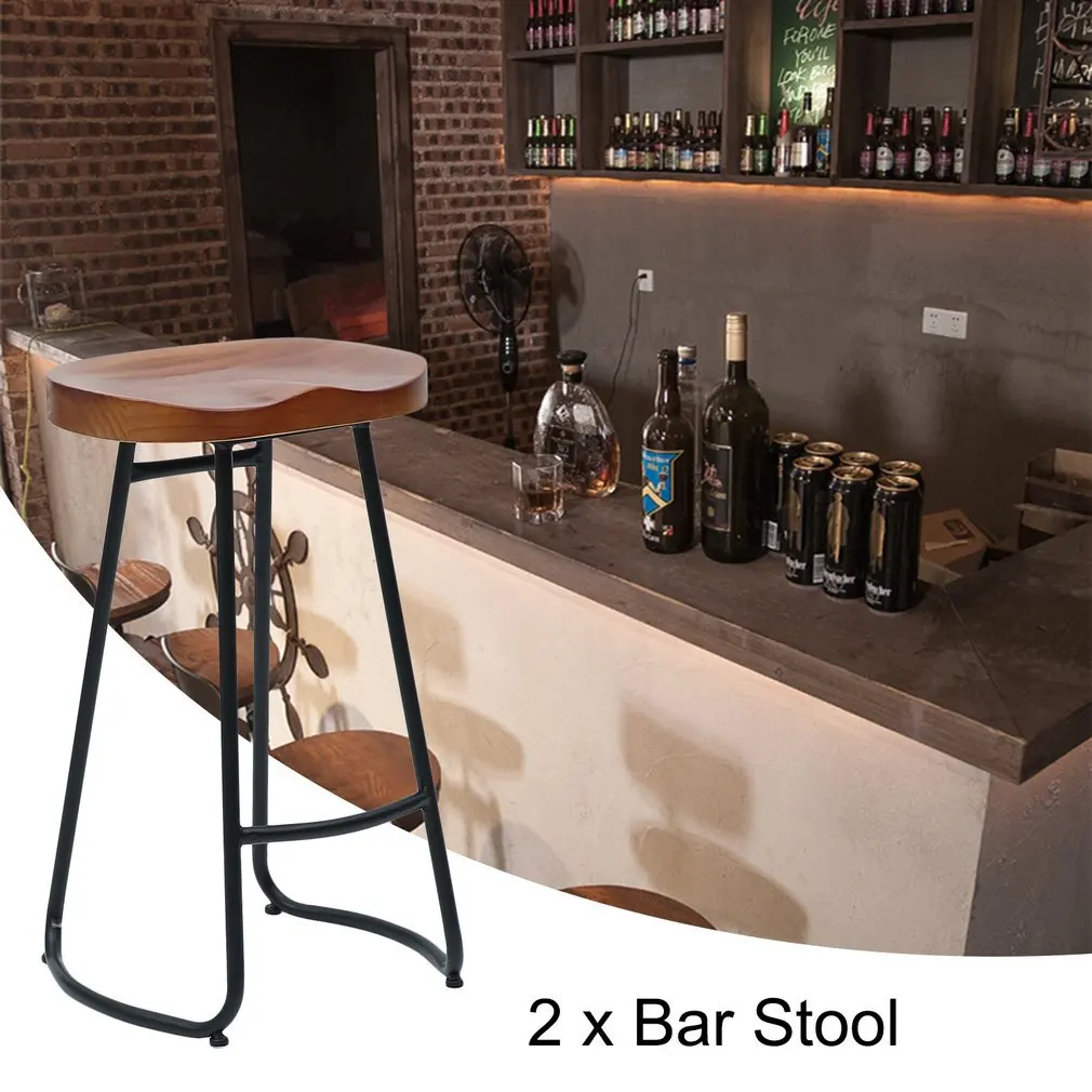 2 PCS Vintage Rustic Design Backless Barstool 70cm Height Pub Bar Stool Kitchen Wooden Stool Industrial Style Home Furniture