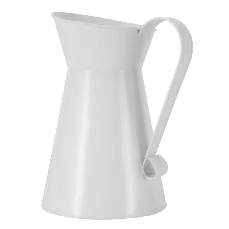 Vintage Tall Shabby Chic Cream Vase Enamel Pitcher Jug Wedding Home Decor