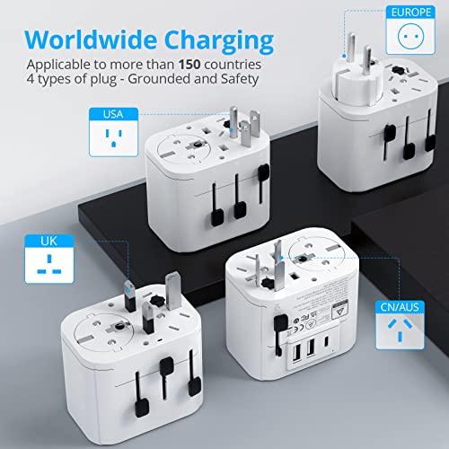 VINTAR Adattatore da viaggio mondiale, adattatore da viaggio universale 4 in 1 con 1 USB-C e 2 porte USB, adattatore per spina internazionale per Stati Uniti, Germania, UE, Australia, Italia