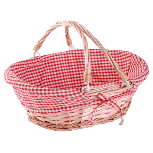 Vintiquewise Cestino Ovale con Doppio Manico a Goccia, in Legno di salice, Rosso/Bianco