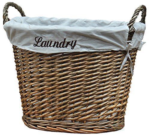 Vintiquewise Cesto portabiancheria in Vimini con Rivestimento Bianco, Grigio