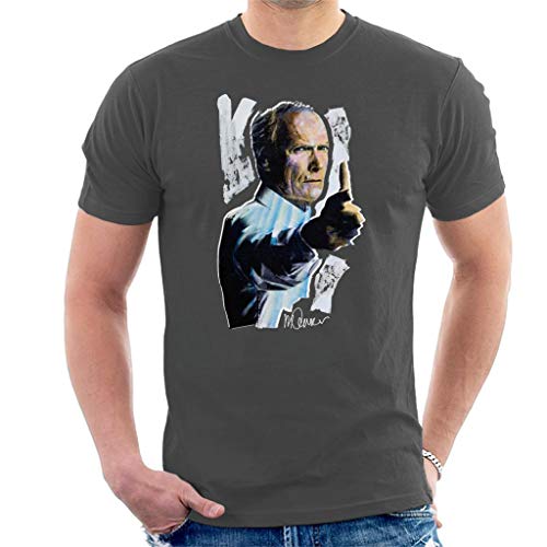 VINTRO Clint Eastwood Gran Torino - Maglietta da uomo originale Ritratto di Sidney Maurer stampata professionalmente Grafite chiaro L