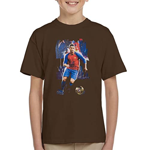 VINTRO Cristiano Ronaldo - Maglietta da bambino originale Ritratto di Sidney Maurer stampata professionalmente, Cioccolato fondente, 5 anni