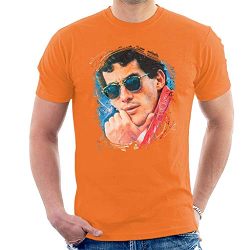 VINTRO T-Shirt da Uomo Ayrton Senna Ritratto Originale di Sidney Maurer (Arancia,L)