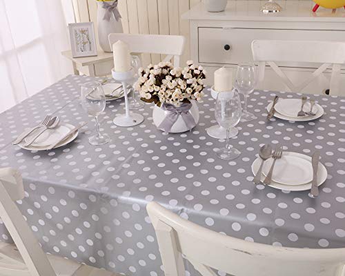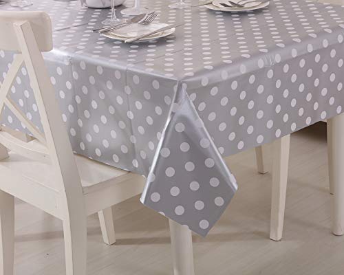 Vinylla - Tovaglia in PVC con motivo a pois, colore: argento, facile da pulire, tessuto: tela cerata., PVC, Silver, 140x180cm