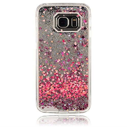 Vioela - custodia per Samsung Galaxy S6 Edge con brillantini liquidi, trasparente, rigida, motivo unicorno, nuvola, arcobaleno, stelle, palloncini, cuori blu, 3D, lucida, con pennino capacitivo