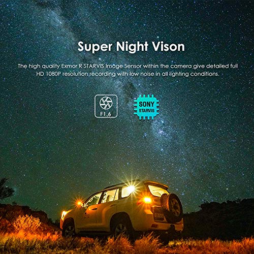 Full HD 1920 x 1080 60 fps -- con processore Novatek 96660 ad alte prestazioni e Sony starvis imx291 sensore di immagine, Dash Cam in grado di registrare video con risoluzione HD 1080p e 60 fotogrammi al secondo. Combinato e lente 7 g F1.6, anche in il immagine ad alta velocità, still capture chiara e liscia.