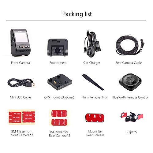 VIOFO A129 DUO Dash Cam Telecamera per Auto Doppia FULL HD 1080P 2,0" Schermo LCD con GPS con Telecomando Senza Fili Super Visione Notturna, Monitoraggio 24 ore, Rilevatore di Movimento