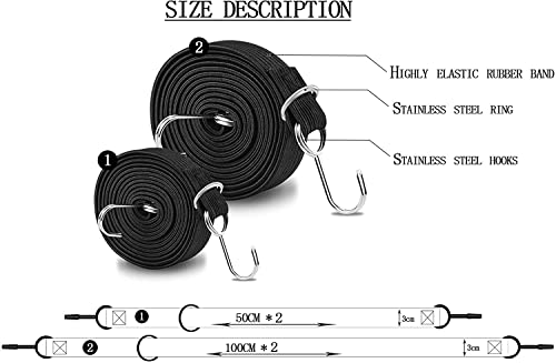 VIOFOTT 4 Pezzi Corde Elastiche Bungee Resistenti Campeggio,Cinghia Elastica con Ganci Adatto per Giardinaggio, Trasporto, Trasloco, Campeggio, Nero, 50 e 100 cm.