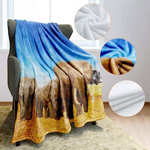 Violetpos - Coperta spessa e morbida, calda, in pile di flanella, coperta per divano, coperta con elefante, per passeggiate, famiglia, 150 x 200 cm
