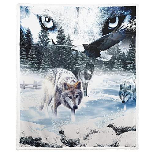 Violetpos Warm Sherpa Copridivano Coperta spessa 150 x 200 cm morbida flanella morbida coperta in pile copriletto Snow Forest Wolves Eagles