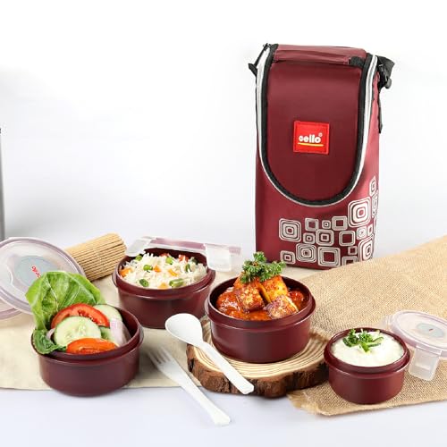 Violoncello max Fresh click polipropilene lunch box set, 4-pieces, Brown, Set di 4