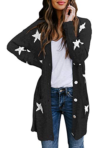 Caratteristica con bottoni in basso, stampa a stelle, manica lunga, due tasche, cardigan aperto