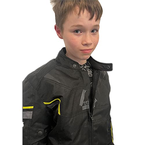 Giacca da moto in tessuto impermeabile per bambini, armatura rimovibile su spalle e gomiti, fodera in rete fissa e retro completamente impermeabile,