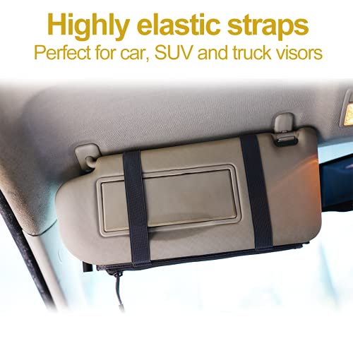 【Facile da installare】Questa copertura per visiera parasole per auto è facile da installare. Basta far scorrere l'organizer sulla visiera e fissarlo con due cinghie altamente elastiche. La robusta base in cartone si adatta perfettamente sotto l'aletta parasole dell'auto. Liberamente regolabile, facile da installare e rimuovere in pochi secondi. Dimensi