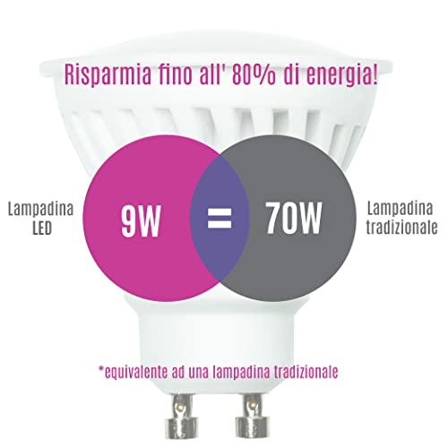 VIPLED - SET di 5 LAMPADINE LED IN CERAMICA - FARETTO GU10 - 9W - EQUIVALENTI a 70W DELLA LAMPADINA ALOGENA - 1000 LUMEN - LUCE NATURALE 4000K
