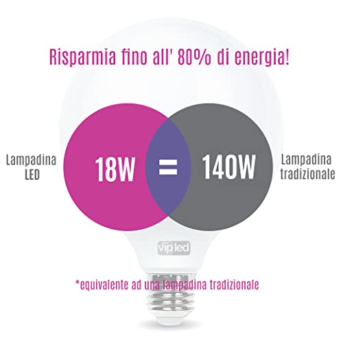 VIPLED - SET DA 3 LAMPADINE LED E27 - 18W EQUIVALENTI A 140W - 3000K - LUCE CALDA - 1550 LUMEN - LAMPADINA GLOBO G120